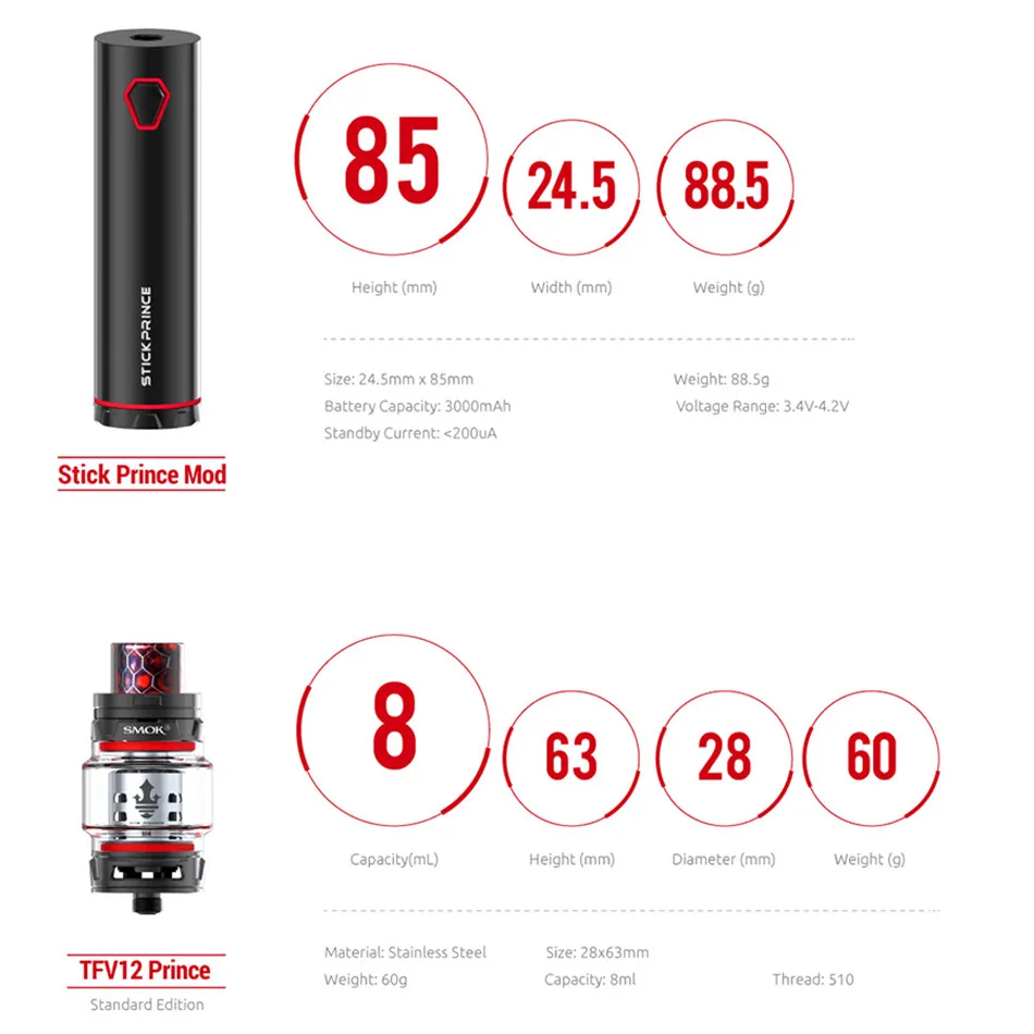 | Electronic Cigarette Kit SMOK Osub 80W Baby Kit Vape Box Mod Vaporizer E Cigarette Hookah Mech Mod with TFV8 Baby Tank S052 |
